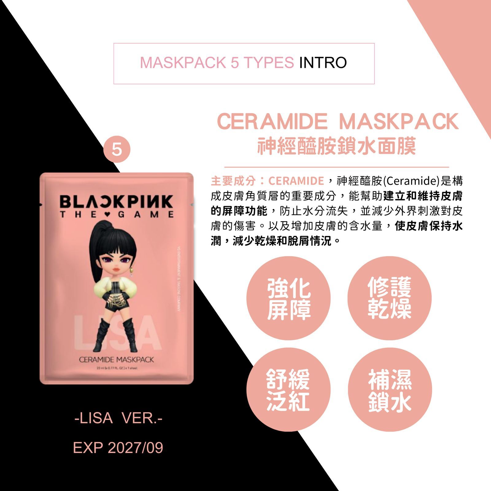 Each box contains MASKPACK 7P, PHOTOCARD 1P, STICKER 9TYPES 1P(RANDOM), and BLACKPINK THE GAME COUPON CARD 1P(Worth KRW$10,000)